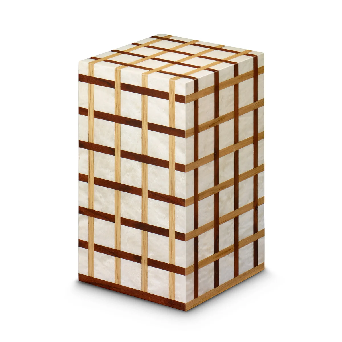 The Greer Collection remembers our great-uncle Robert Greer. The inherent elegance of white maple, walnut, mahogany and ash woods combine in a visually distinct look that reflects the beauty of the natural world. The simple yet sophisticated basket-weave pattern has intersecting lines that securely hold the memory of your loved one close to your heart and thoughts, honoring a life well-lived.